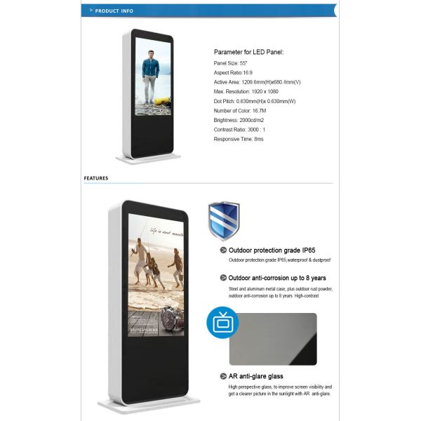 Floor Standing Outdoor LCD Advertising Screen Digital Signage Displays 55 Inch Images |